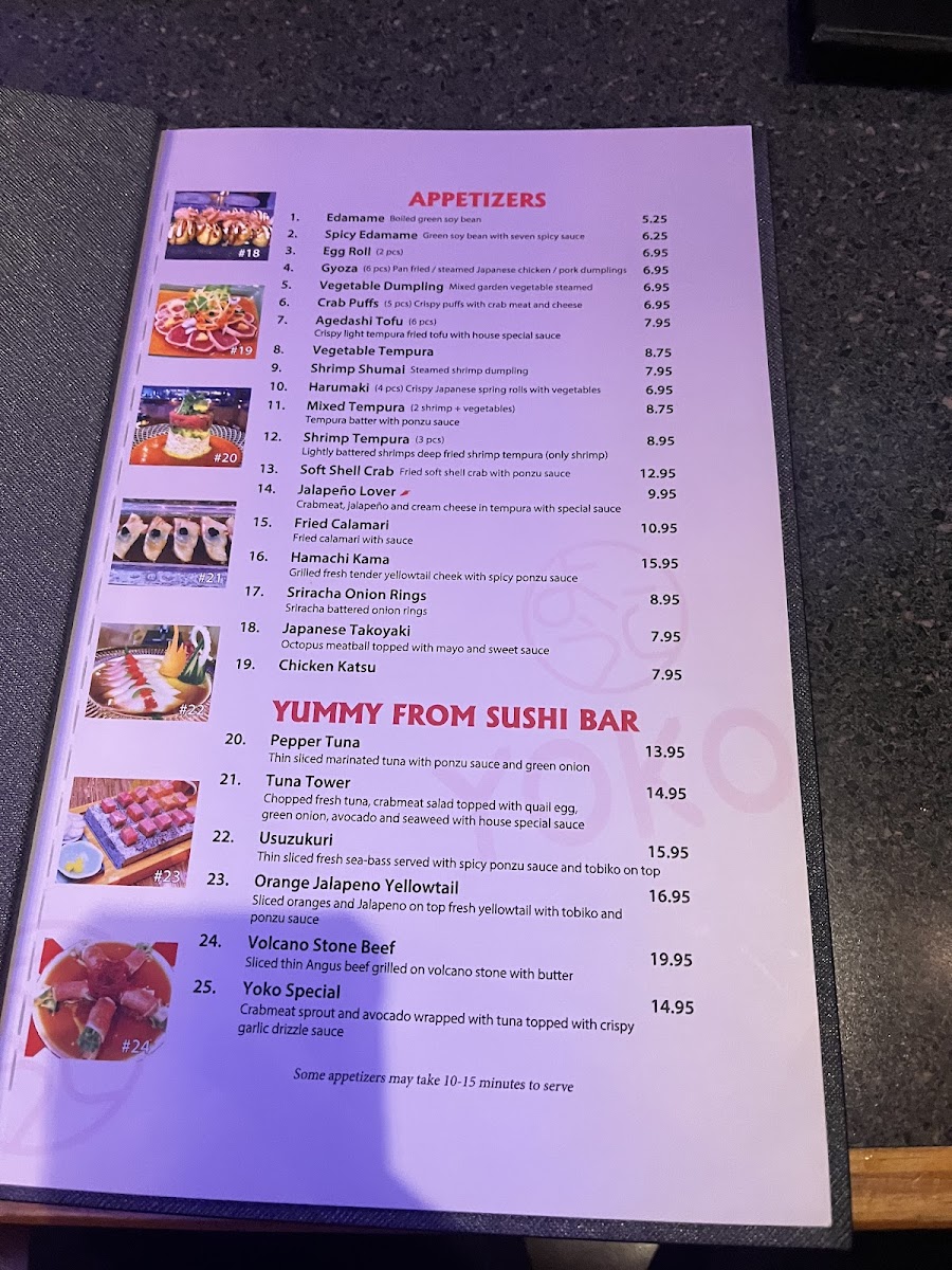 Introducing the menu at Yoko Japanese Kitchen, located in Cypress, Texas, is an experience brimming with flavor and entertainment. Known for its hibachi, diners rave about large portions and a lively atmosphere. Chef performances add a theatrical flair, as highlighted by customer experiences that emphasize both taste and service.
